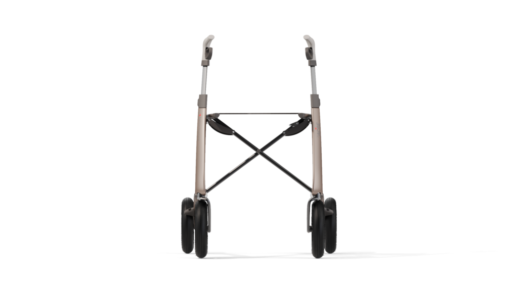 Dankzij de handgrepen die naar voren zijn gericht stapt u dichter bij de rollator waardoor u met een rechtere rug stapt.