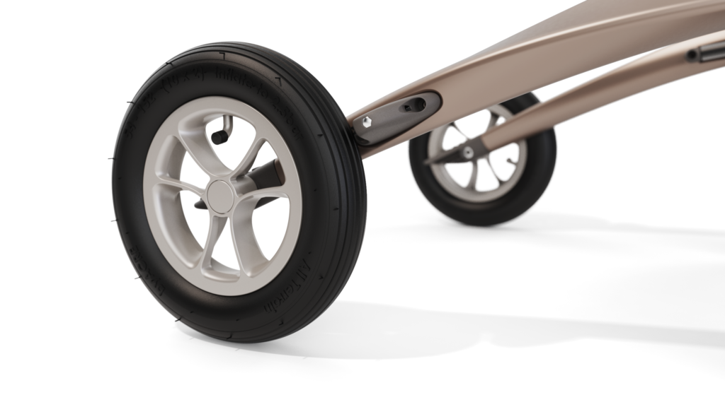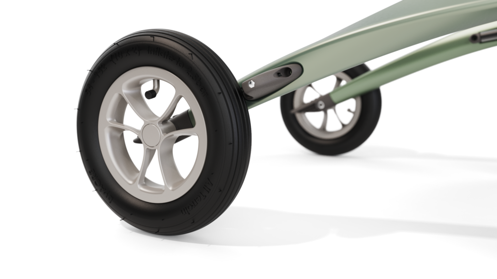 De Carbon Overland is verkrijgbaar in de kleuren green metallic en brown metallic, deze rollator wordt ook geleverd met een Grocery Bag waar u spullen kunt in opbergen.