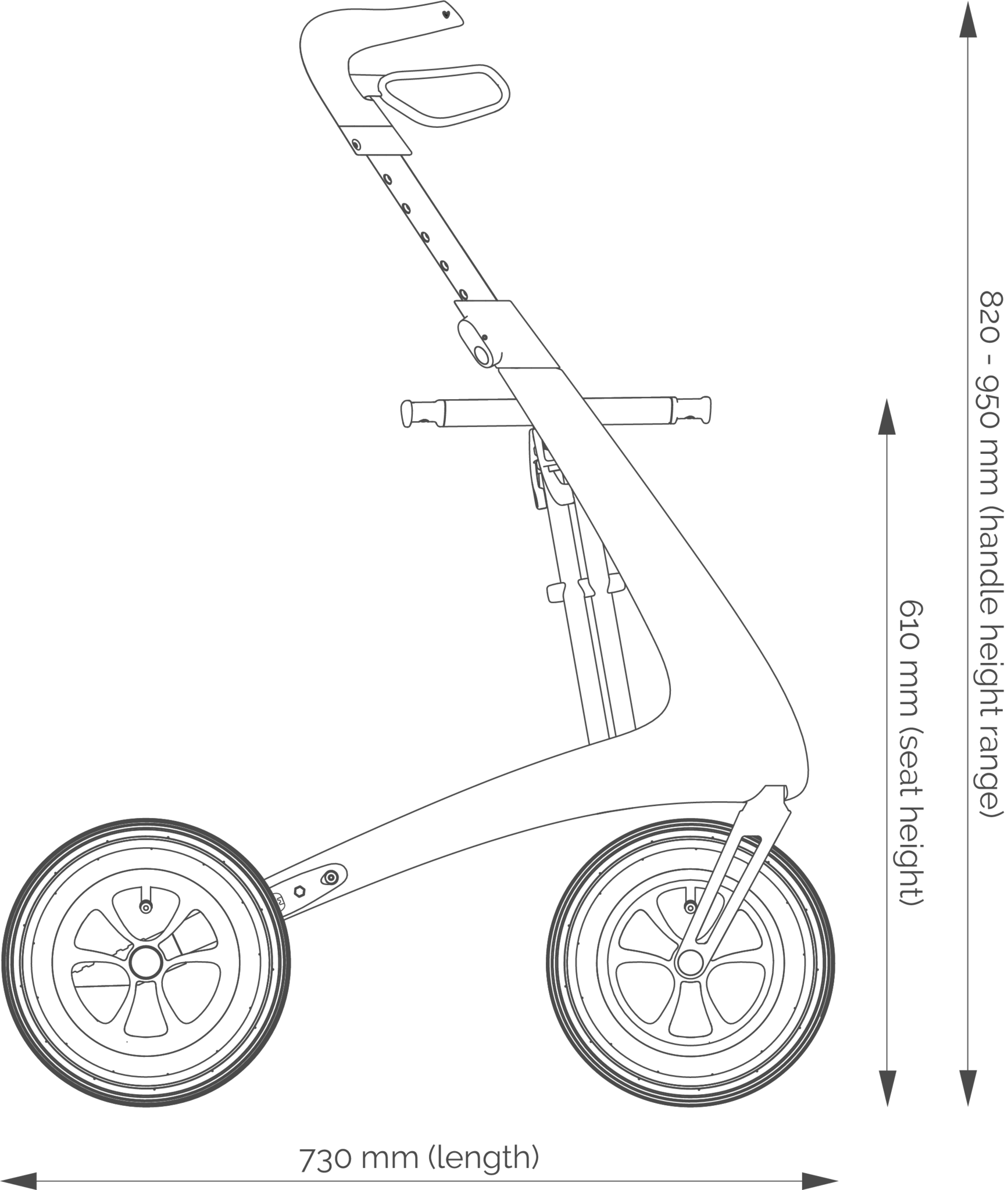 - Handvat hoogte: 82 - 95 cm