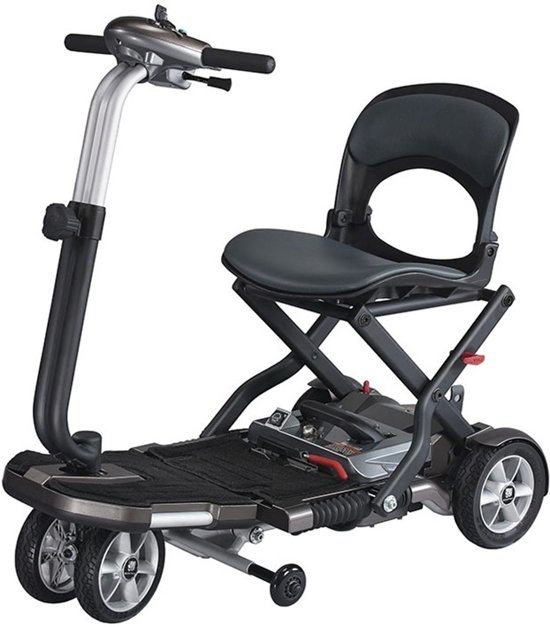 Door het innovatieve vouwsysteem kan de Heartway Brio BL270 Scootmobiel handig worden meegenomen in het hotel, winkelcentrum of bijvoorbeeld het vliegveld. De Heartway Brio BL270 rijdt namelijk op zijn eigen wielen wanneer u deze heeft opgevouwen waardoor u zonder inspanning deze handige opvouwbare scootmobiel meeneemt.