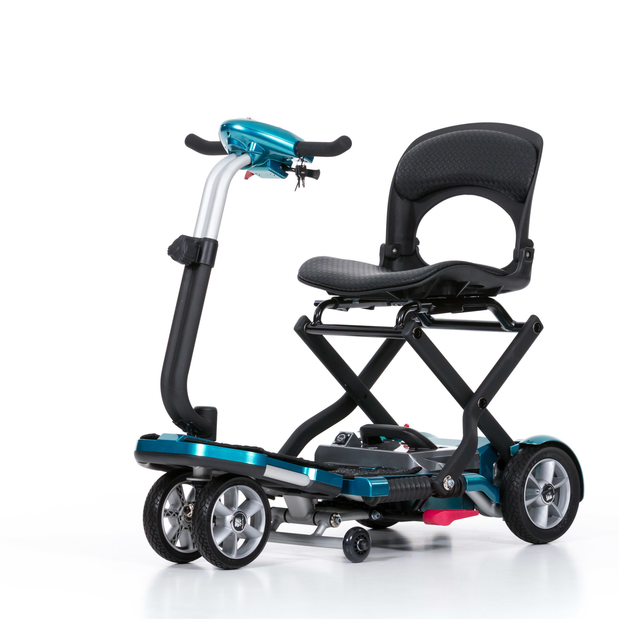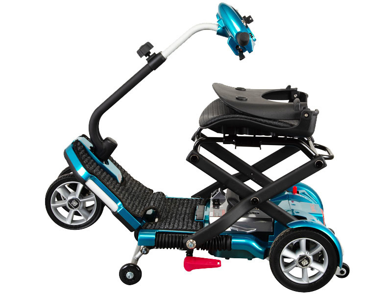 Bent u niet meer zo mobiel, maar wilt u geen uitje of reisje missen? Dan is de Heartway Brio S19 Scootmobiel een uitkomst voor u! Deze vouwscoot is de snelst opvouwbare lichtgewicht scootmobiel ter wereld; kwalitatief en technisch hoogstaand. Zo tovert u de kleine metallic-blauwe scootmobiel in één simpele beweging om tot een handzame reiskoffer die u zo met u mee rolt.