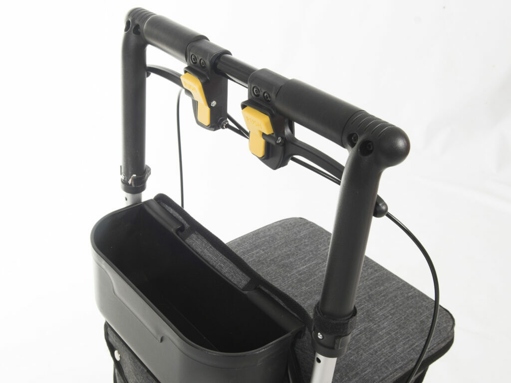 Een andere handige eigenschap van de Lett900 boodschappenrollator is het extra mandje onder het handvat. Hier kunt u makkelijk al uw kleine voorwerpen in opbergen die u gedurende de dag nodig hebt. Denk aan uw telefoon, portemonnee of zonnebril. De lett900 boodschappenrollator is daardoor niet alleen veilig in gebruik, maar ook van alle gemakken voorzien.