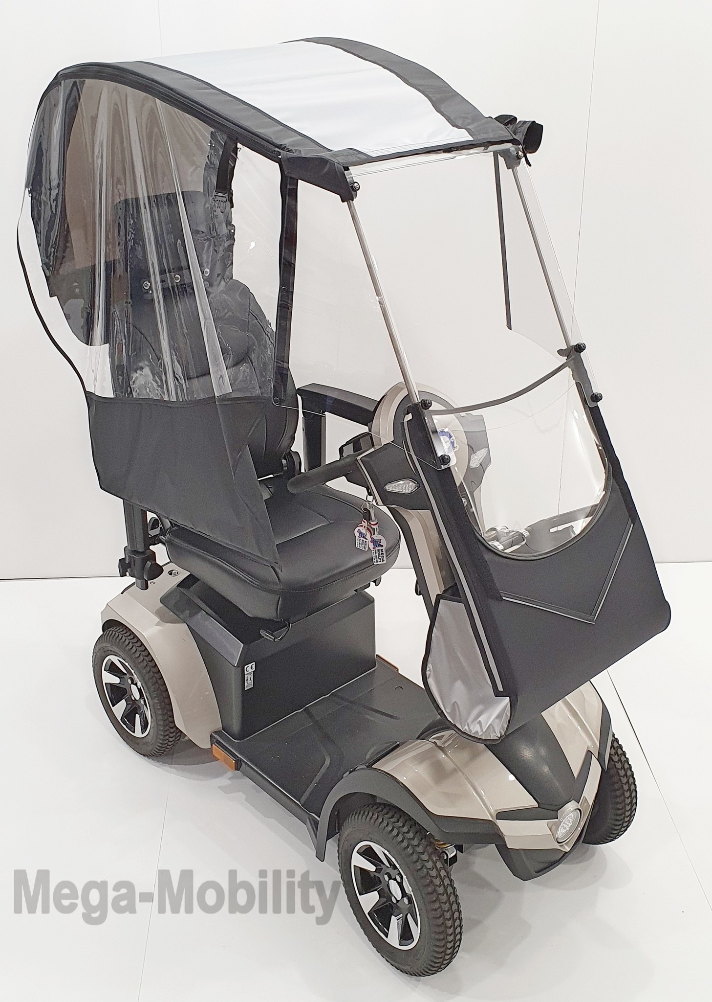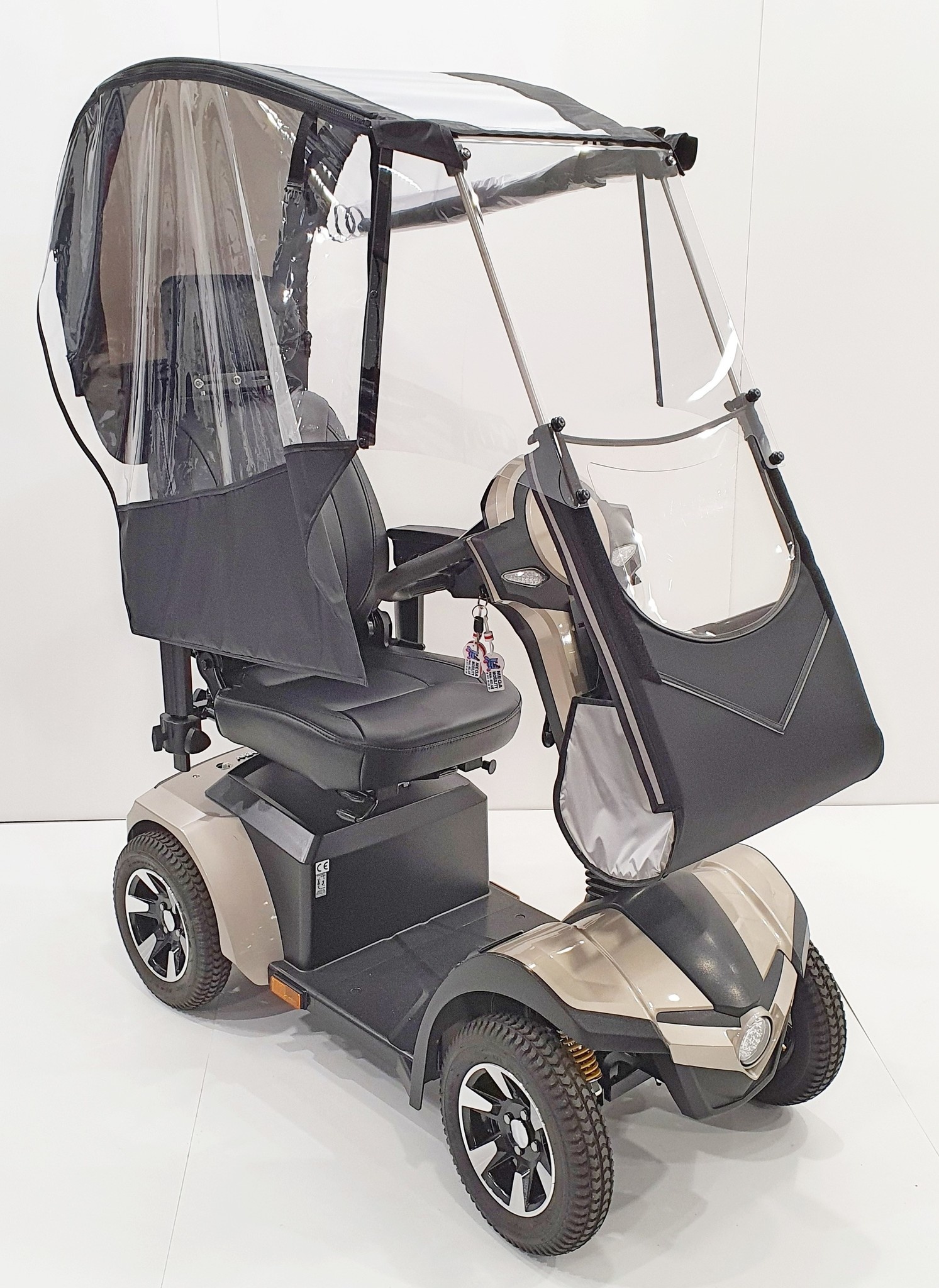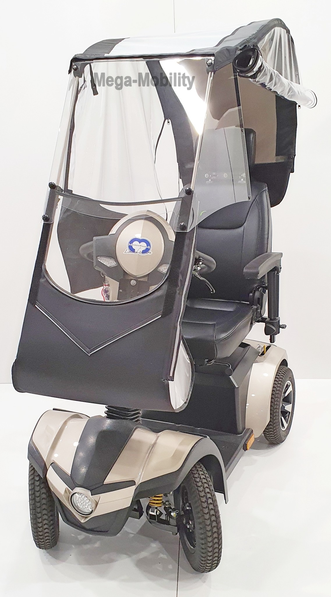 Voorzien van een waterdichte mand, is de luifel gekoppeld aan de voorruit en biedt scootmobielen een uitstekende bescherming tegen regen, wind en zon.