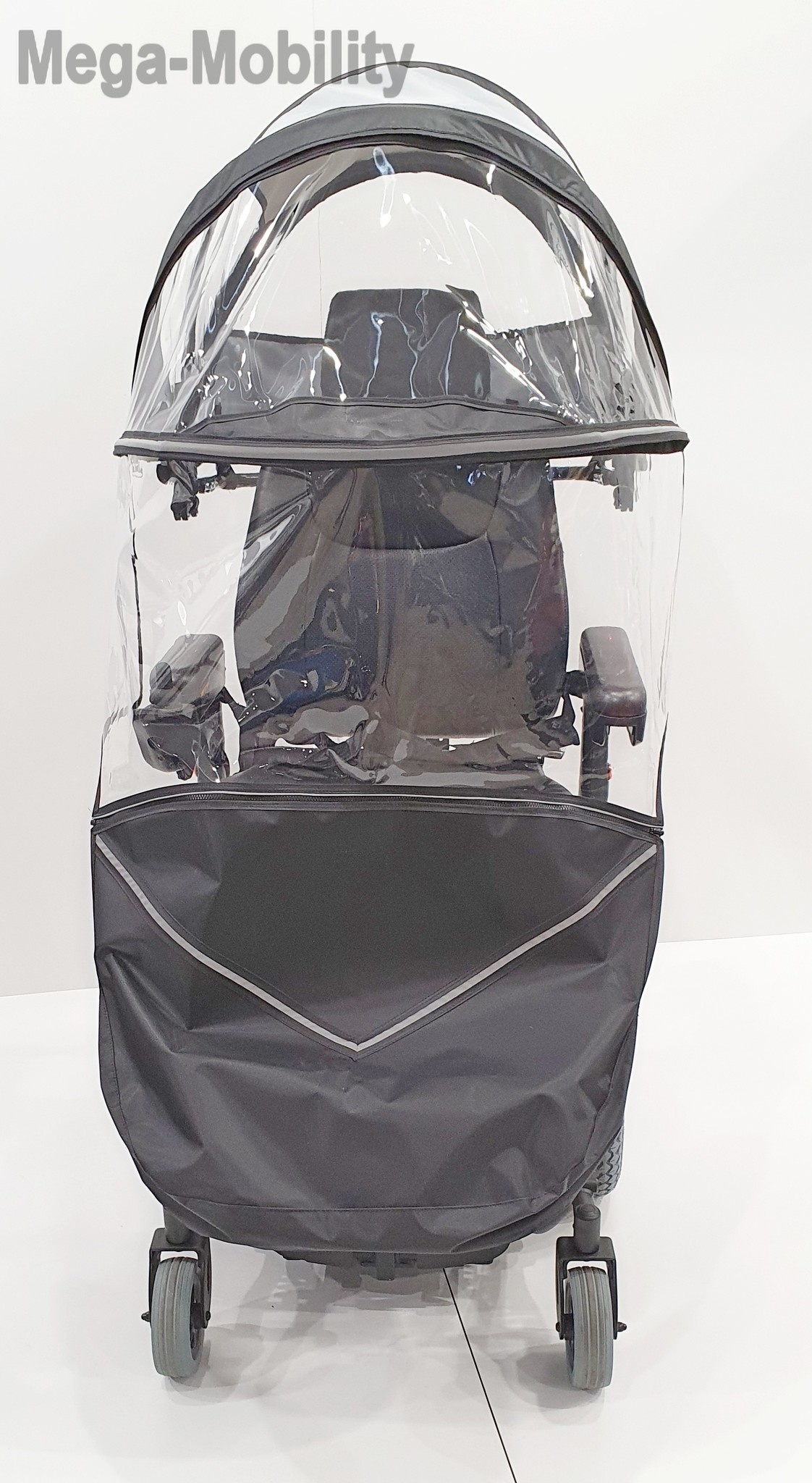 Het transparante voorste deel is afneembaar en kan in de zomer ook als bescherming tegen de zon en UV worden gebruikt.