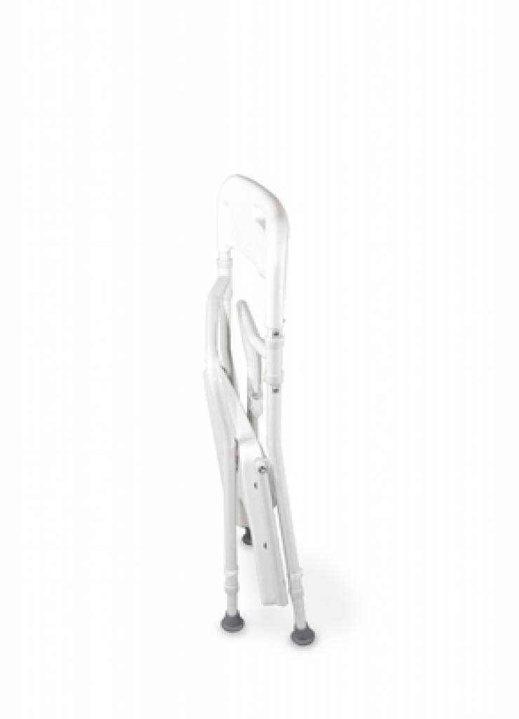 Opvouwbare Douchestoel van Mega is een douchestoel die zeer geschikt is voor in kleinere badkamers en douchecabines.