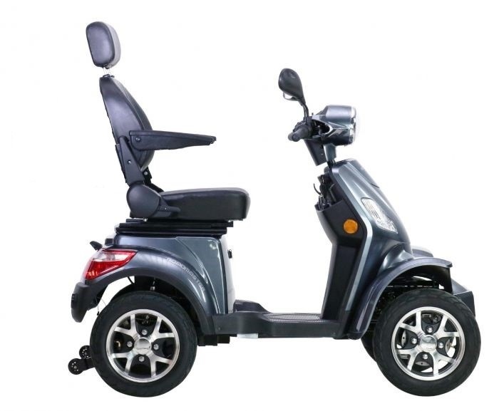 De nieuwste scootmobiel van Excel is de Roadmaster. De stabiele 4 wiel scootmobiel heeft een maximale snelheid van 22 km/u zodat u heerlijk kunt toeren en goed mee kunt komen met een elektrische fiets. De comfortabele zitting is draaibaar en verstelbaar zodat u deze naar wens kunt instellen. Met de 60V 20Ah lithium accu kunt u tussen de 38 en 50 km aan afstand halen en heerlijk uw ding doen. Zijn sportieve uiterlijk zorgt voor een eigentijdse uitstraling en een sportief design. De bediening is met een handig draaigas systeem aan een stuur en handremmen zoals u eigenlijk altijd al gewend bent . Zo voorkomt u ongelukken en hoeft u niet te wennen aan aan de besturing zoals bij een normale scootmobiel. Wanneer u de handremmen inknijpt werkt meteen de gashendel niet meer zodat u niet tegelijk kunt remmen en gasgeven. Ook is er de mogelijkheid om de scootmobiel te starten met de afstandsbediening zodat u niet de sleutel erin hoeft te doen.