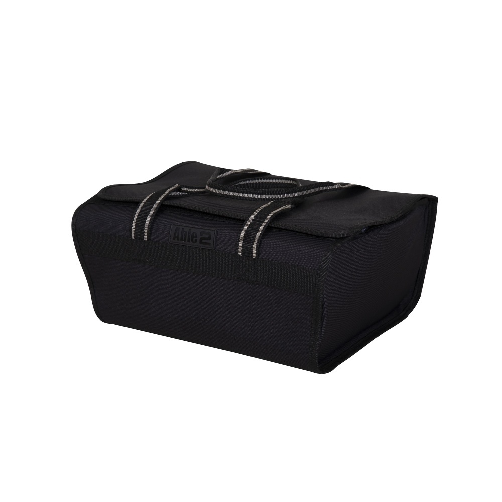 Deze handige Splash rollatortas plaatst u eenvoudig in het metalen rechthoekige mandje van een standaard rollator. Ideaal om boodschappen droog en onzichtbaar mee te nemen. Door de twee hengsels is de tas gemakkelijk mee te nemen. De tas heeft één groot hoofdvak en sluit af met een stevige klittenbandsluiting. Gemaakt van polyester. Kleur zwart.