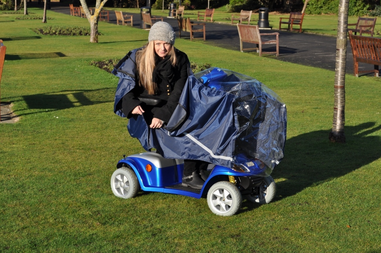 Deze praktische scooter cape beschermt de scooter en de gebruiker. Door de transparante voorzijde blijft de verlichting zichtbaar en kunt u de besturingsdisplay zien. Uw spiegels kunnen via een opening aan de zijkant van de cape naar buiten steken. Inclusief solide ritssluiting over de gehele lengte. Reflecterende strips aan de zij-en achterkant zorgen ervoor dat u vooral 's avonds goed opvalt in het verkeer. Verkrijgbaar in twee maten.