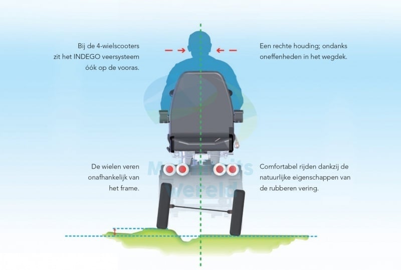 De Solo 4 is een doorbraak in het comfort van 4-wiel scootmobielen. De ervaring van Life & Mobility met super-comfortabele scootmobielen komt helemaal tot uiting in deze degelijke scootmobiel.Heeft u pijn bij het rijden op uw huidige scootmobiel, dan moet u echt de Solo 4 eens proberen! De Solo 4 is gemaakt voor een comfortabele, ontspannen rit. De gepatenteerde veer-techniek van de 4 zorgt ervoor dat oneffenheden in de weg soepel worden opgevangen, zonder dat de rij-eigenschappen eronder lijden. Daarbij kunt u een fijne zitpositie vinden door de vele instelmogelijkheden en de comfortabele ergonomisch gevormde stoel.