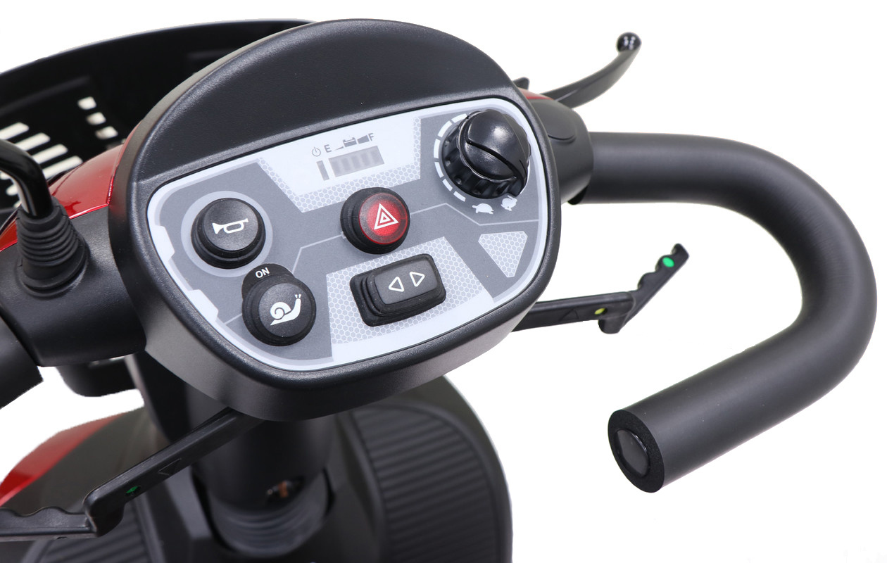 De comfortabele captainstoel is volledig aan te passen aan uw wensen en kan 360˚ draaien voor een gemakkelijke instap. De Drive ST4D scootmobiel is compact en wendbaar. De vering rondom en de krachtige efficiënte motor zorgt voor maximale prestaties, betrouwbaarheid en een comfortabele rit. De comfortabele alleskunner