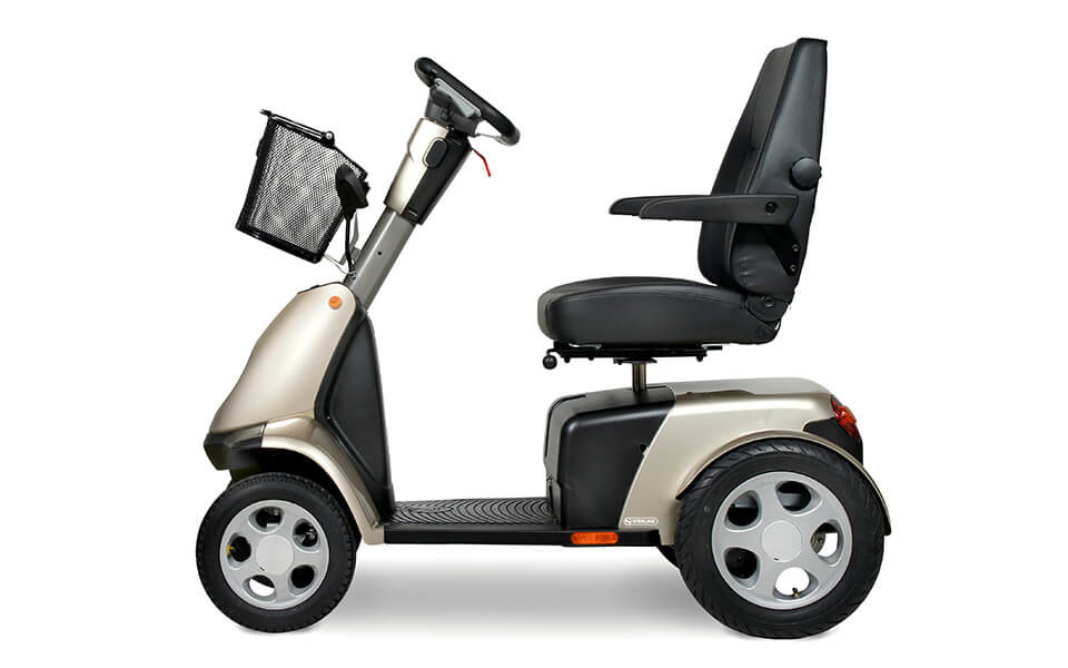 Deze krachtige scootmobiel zorgt voor soepel en stabiel rijgedrag op elk terrein. Door het compacte ontwerp en Intuitive Control Steering System (ICLS) is de scootmobiel heel wendbaar en stuurt het net als een auto. Het is eenvoudig om beide handen aan het stuur te houden, maar je rijdt net zo gemakkelijk en veilig wanneer je slechts één hand kan gebruiken.