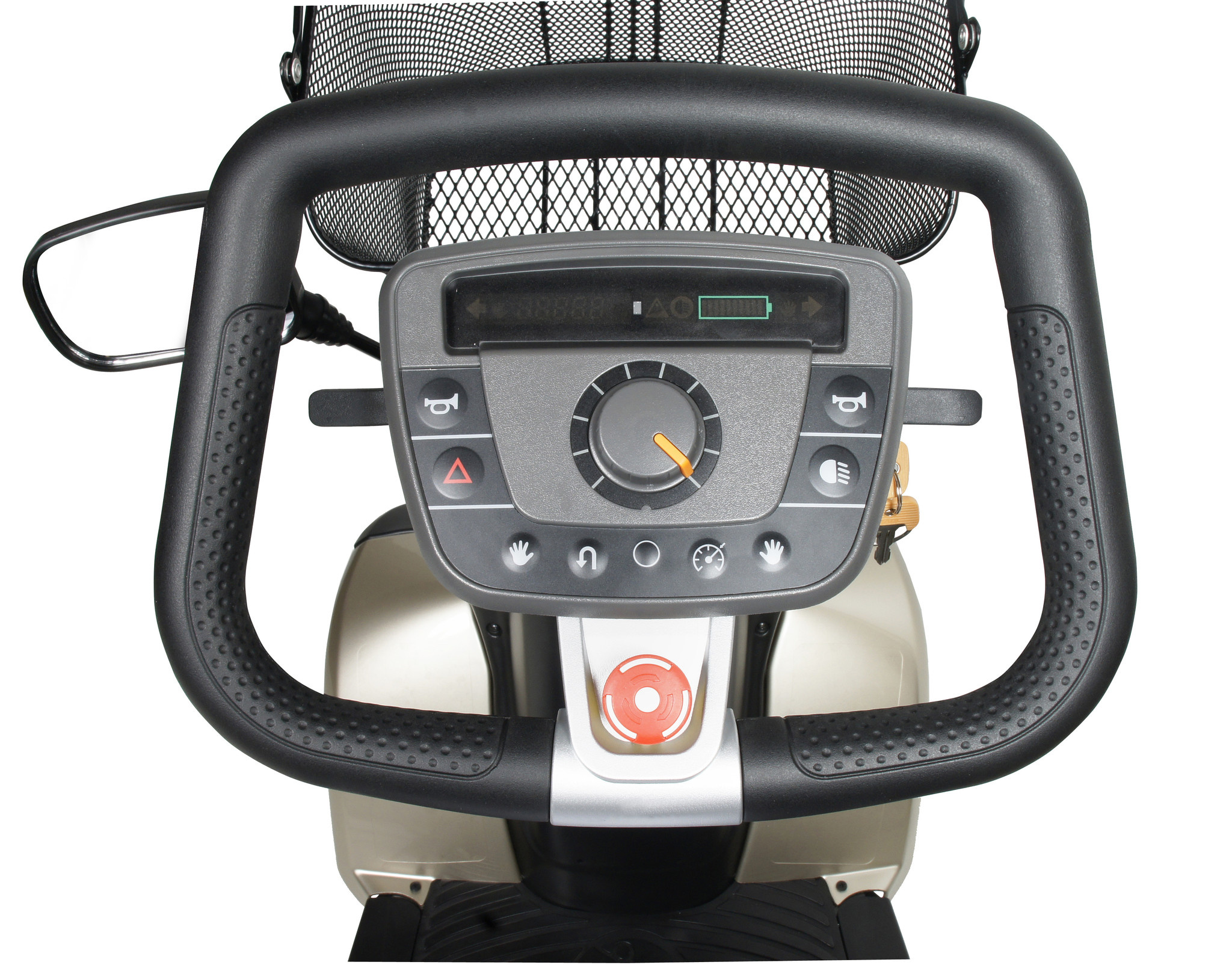 De Sunrise Medical Sterling Trophy 6 Scootmobiel staat voor kwaliteit en veiligheid. Beide handen aan het stuur bij de bediening. Een betrouwbare accu-indicatiemeter en dagteller geven een veilig gevoel.