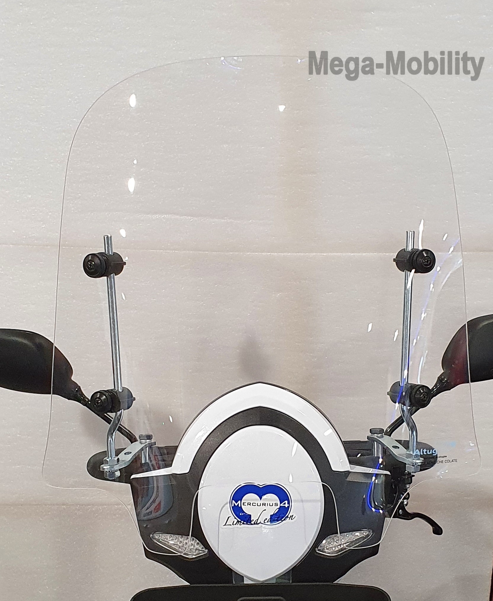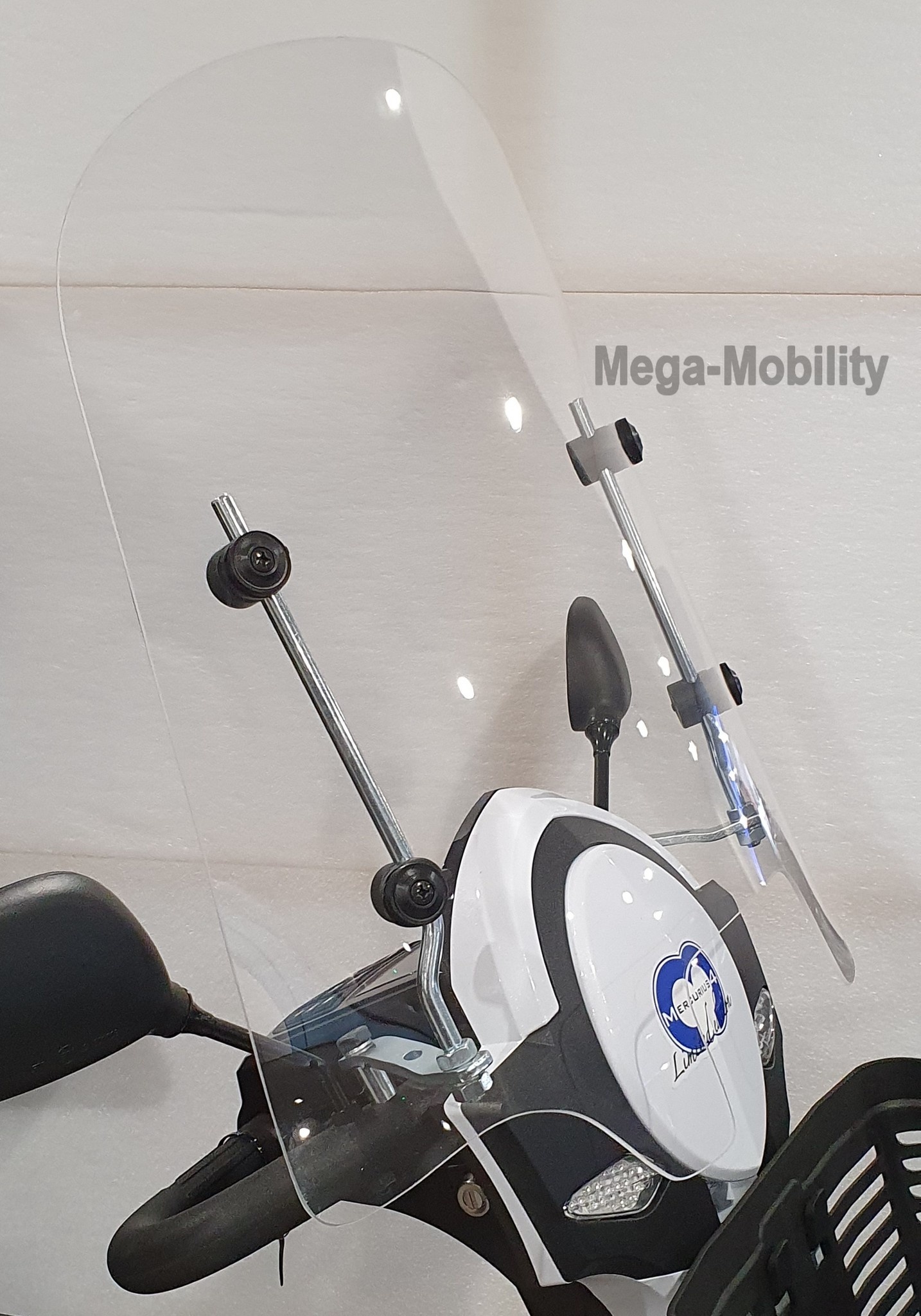 Windscherm Universeel helder incl.bevestigingsset voor alle scootmobielen met stuur, excl.trophy en Galaxy Plus scootmobielen